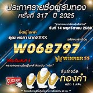 ประกาศรายชื่อผู้โชคดี พรภา นาคxxxx ได้รับทองคำหนัก 1 สลึง ประจำวันที่ 14 พฤศจิกายน 2568